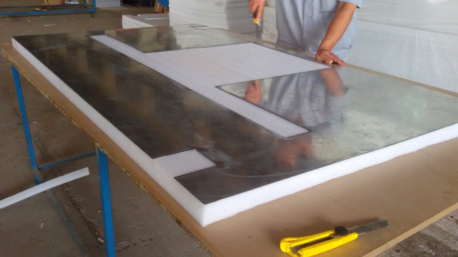 在工裝板上貼PVC膠皮是常見、普遍的方法,但并不一定能夠在所有產(chǎn)品加工中都起到防刮擦的作用。車間正在生產(chǎn)的智能電視機裝配生產(chǎn)線,就是好的反面案例。由于工裝板表面安裝有智能電視的金屬支撐架,初的設計方案是在金屬支架表面貼PVC膠皮,但方案很快被否決。工程部在經(jīng)過多次探討之后,采用45mm的PE泡棉覆蓋在工裝板表面,同時將金屬支架包裹。這一解決方案的效果在連云港客戶的電視裝配流水線項目中了很好的驗證。